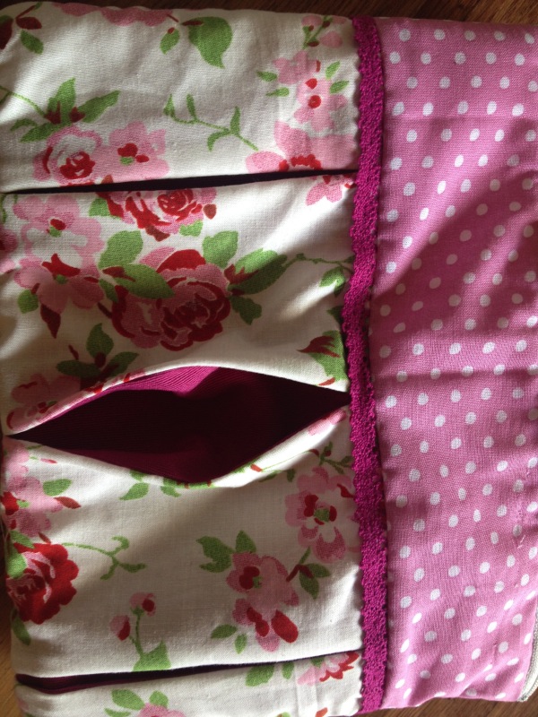 Boden: aus gerafftem Stoff, lila und weiß mit Blumen